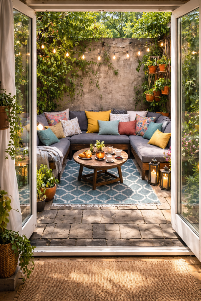 The result is a space that feels cozy, styled, and completely achievable, even in the smallest outdoor areas.
